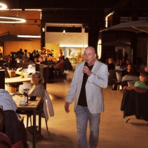 Die 76 angemeldeten Teilnehmer des anschließend vom Verein organisierten Table-Quiz. Charmant und humorvoll moderiert von Ralf Schnoor wetteiferten 19 Spiel-Teams bei 40 gestellten kreativen Fragen über drei Stunden um Sieg und Ehre. Am Ende des munteren Abends mit dem 2010 bei „Wer wird Millionär“ sogar mit der Millionenfrage erfolgreichen Lindener Café K-Gastronomen sind so für die „Business for Kids“-Projekte aus den Teilnahmegebühren und Getränkeerlösen rund 1.100 Euro zusammen gekommen.